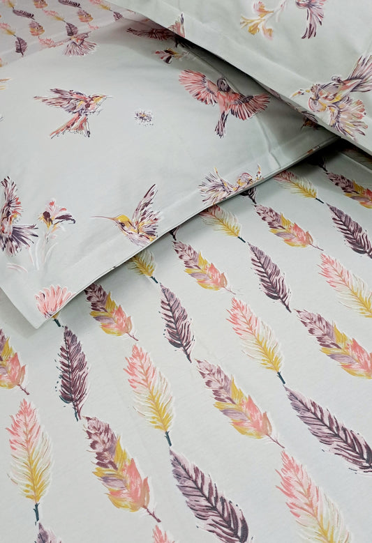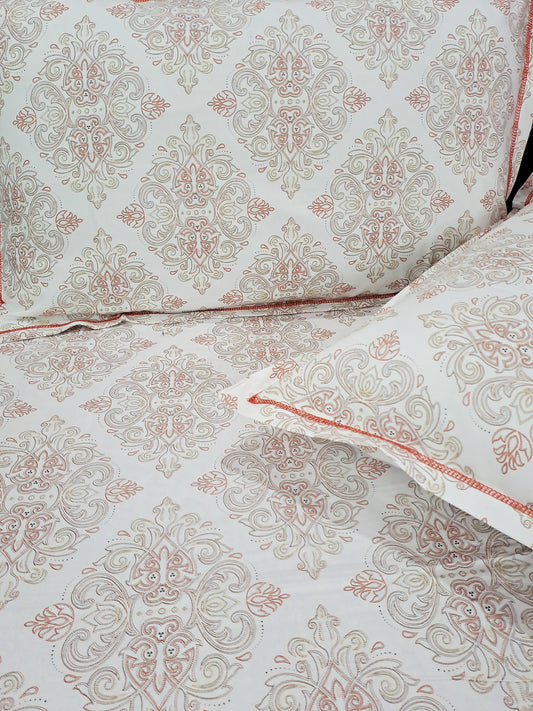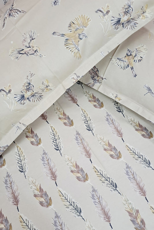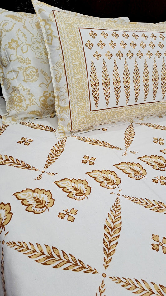 Romeo 100% Cotton Double Bedsheet King Size- Off White Feather