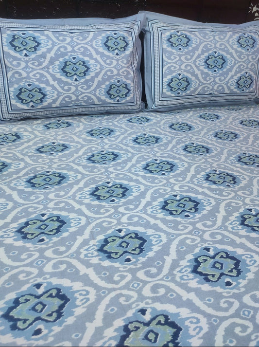 Ikkat Pure Cotton Double Bedsheet - Blue