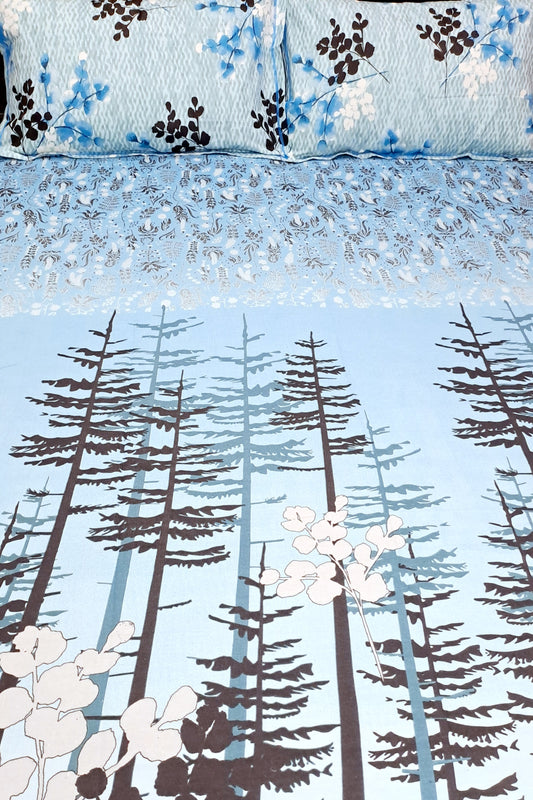 Rose Wood Pure Cotton King Size Double Bedsheet-Blue