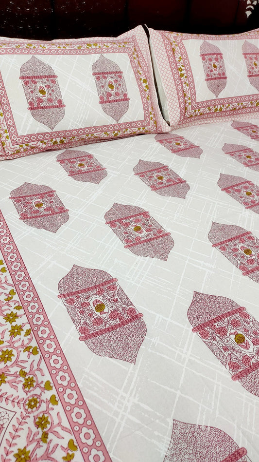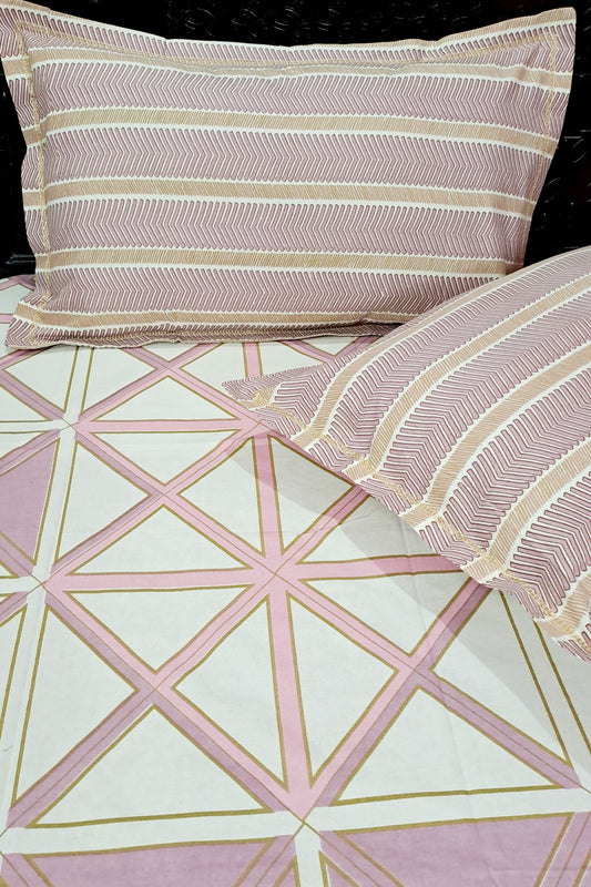 Vedika Block and Stripes Cotton Bedsheet - Pink