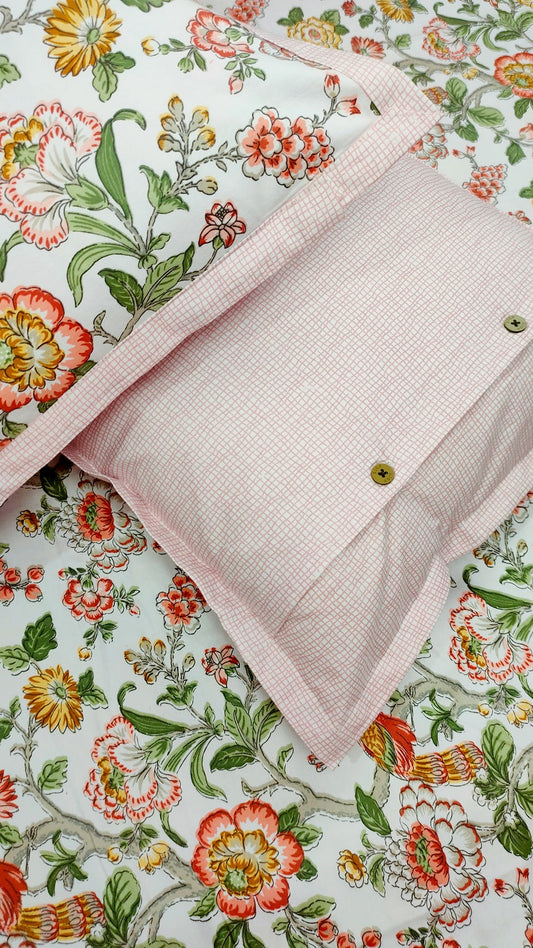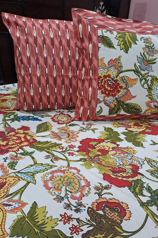 Blossom Cotton Double Bedsheet- Red and Yellow