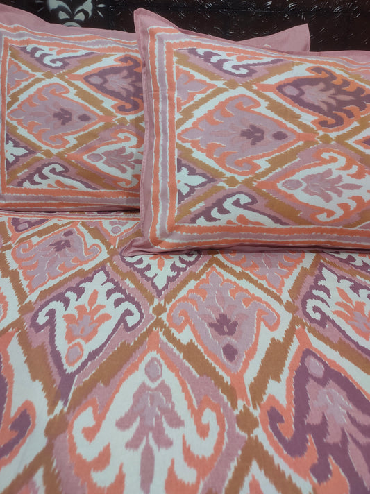 Ikkat Pure Cotton Double Bedsheet - Pink
