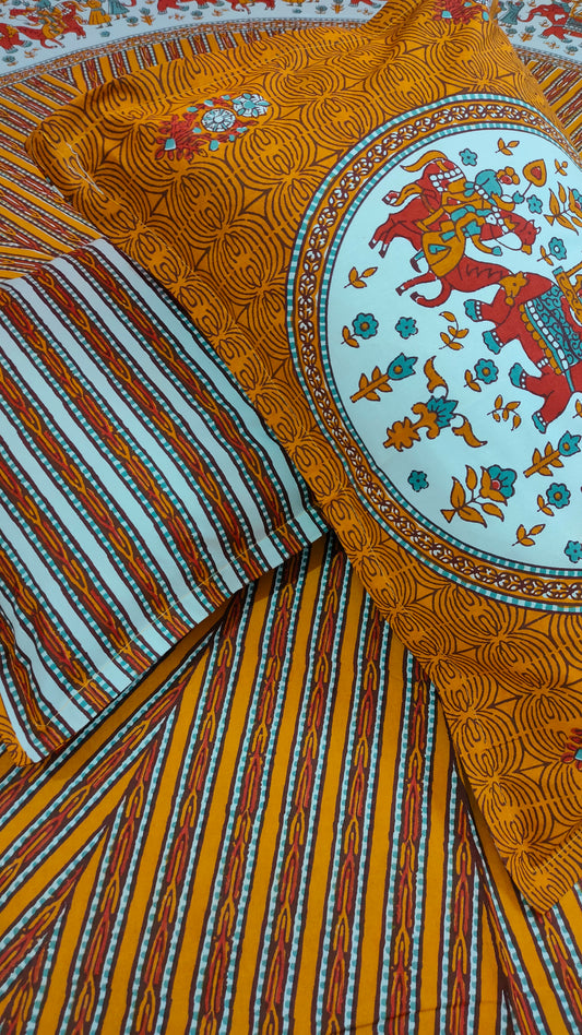 We offer handpicked designs of cotton bedsheet inspired from the traditional art...