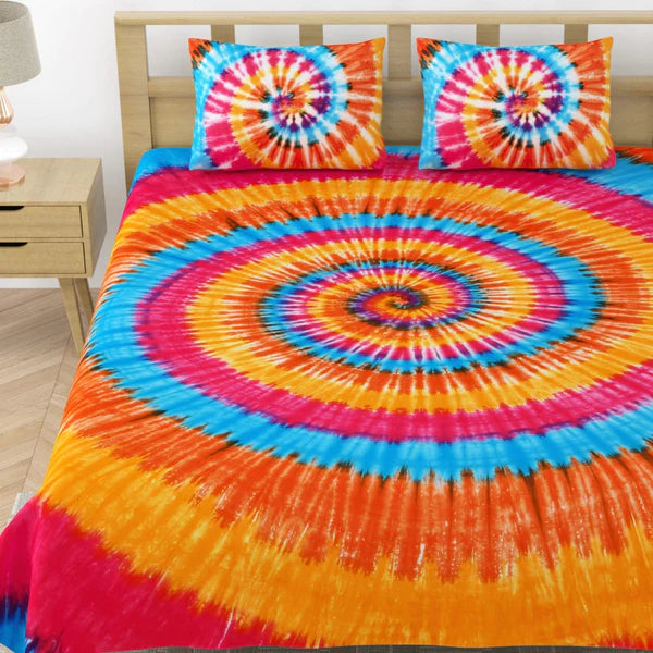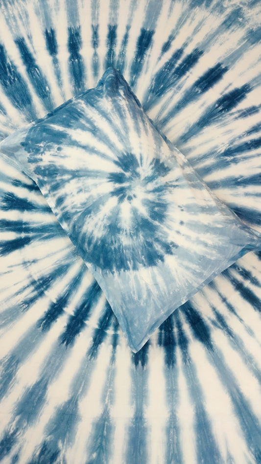 Rangrez Pure Cotton Tie and Dye Bedsheet - Swirl Ink Blue