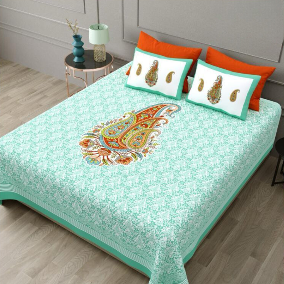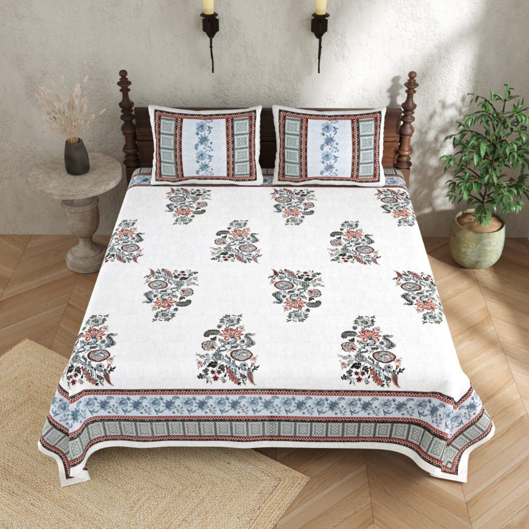 Elevate your bedroom with our exquisite block printed pure cotton bedsheet. enjoy...