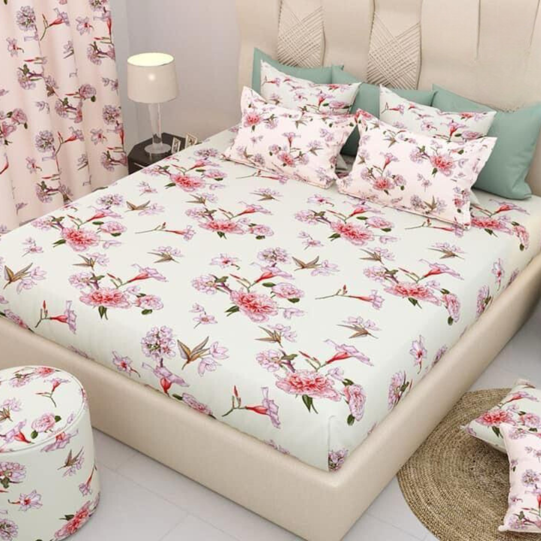 Spring Beauty 100% Cotton Twill Cotton Double Bedsheet King Size Bed - Pink Base