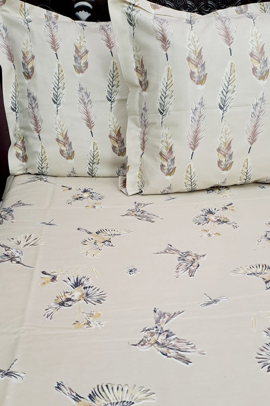 Romeo 100% Cotton Double Bedsheet King Size- Beige Robin