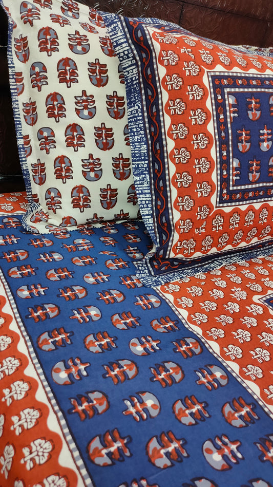 Satrangi Pure Cotton Sanganeri Print Double Bedsheet -Blue Circle