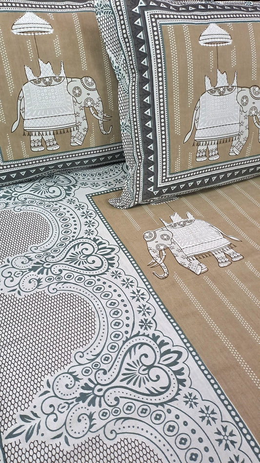 Gulabi Nagri Haathi Pure Cotton Double Bedsheet - Heena Green