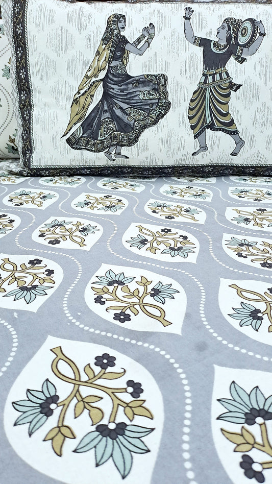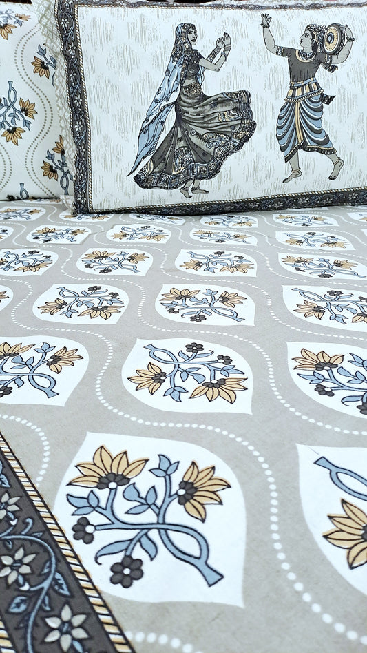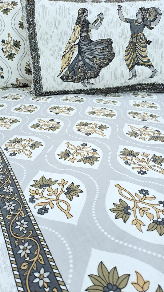 Gulabi Nagri Garba Pure Cotton double bedsheet-light Grey