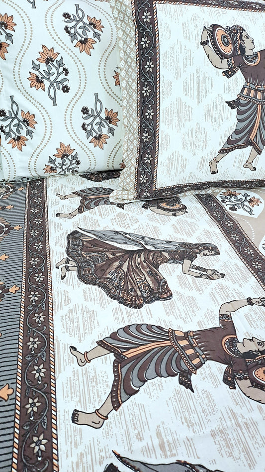 Gulabi Nagri Garba Pure Cotton Double Bedsheet - Biege