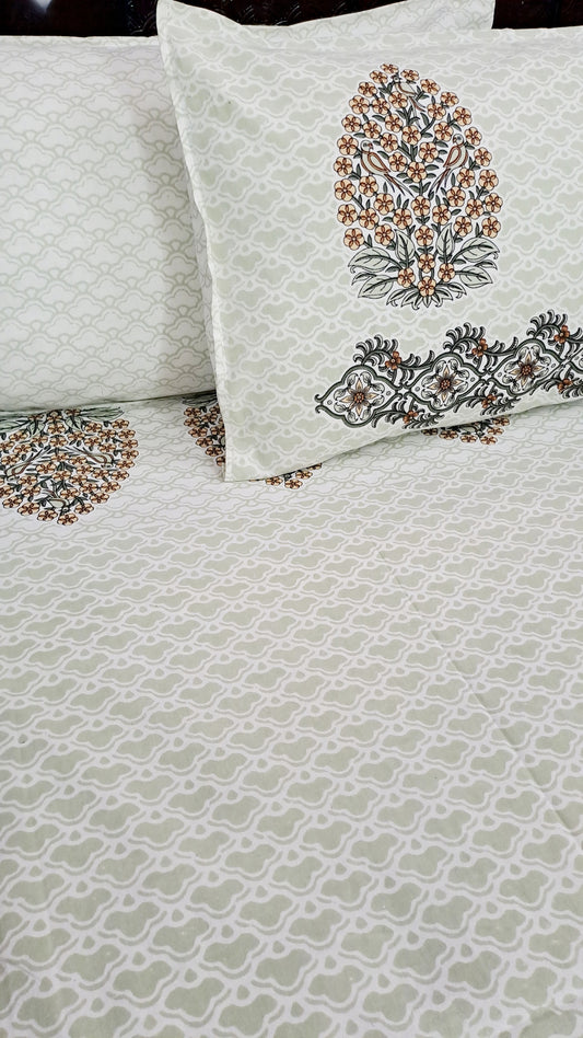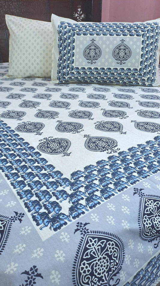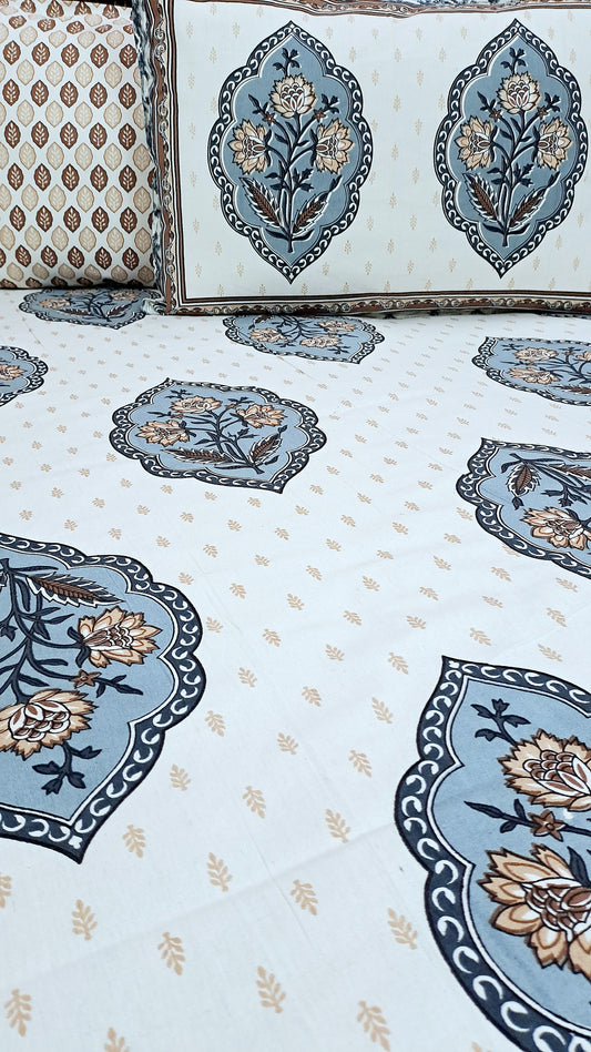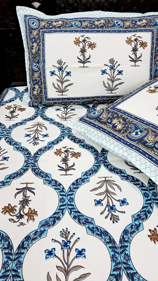 Gul Bagh Pure Cotton Double Bedsheet - Blue Block