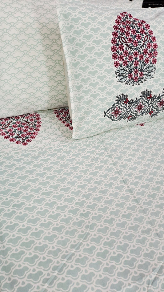Gulabi Nagri Bootaa Pure Cotton Double Bedsheet - Aqua