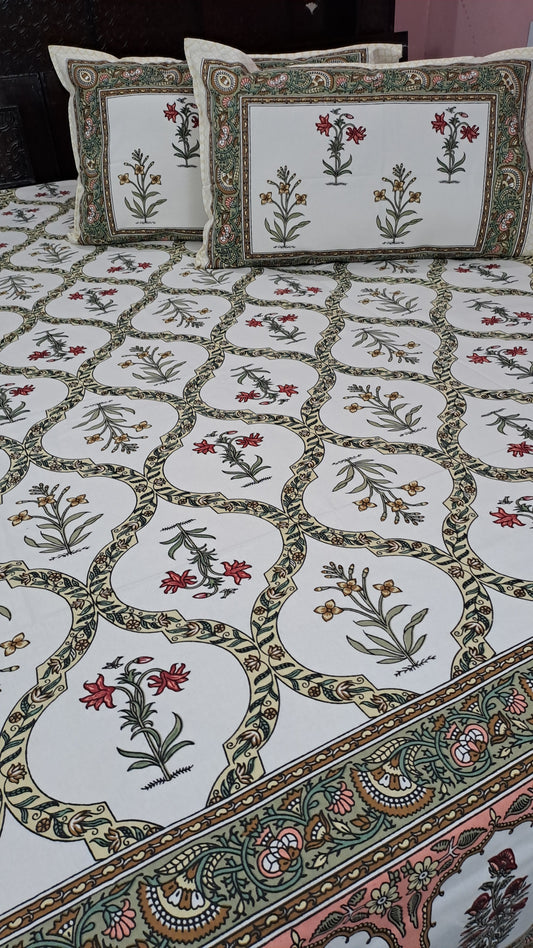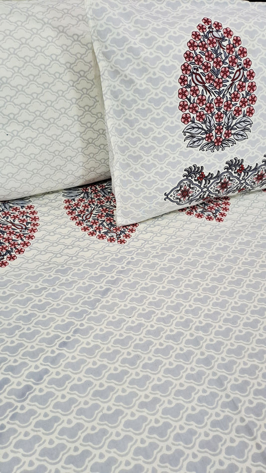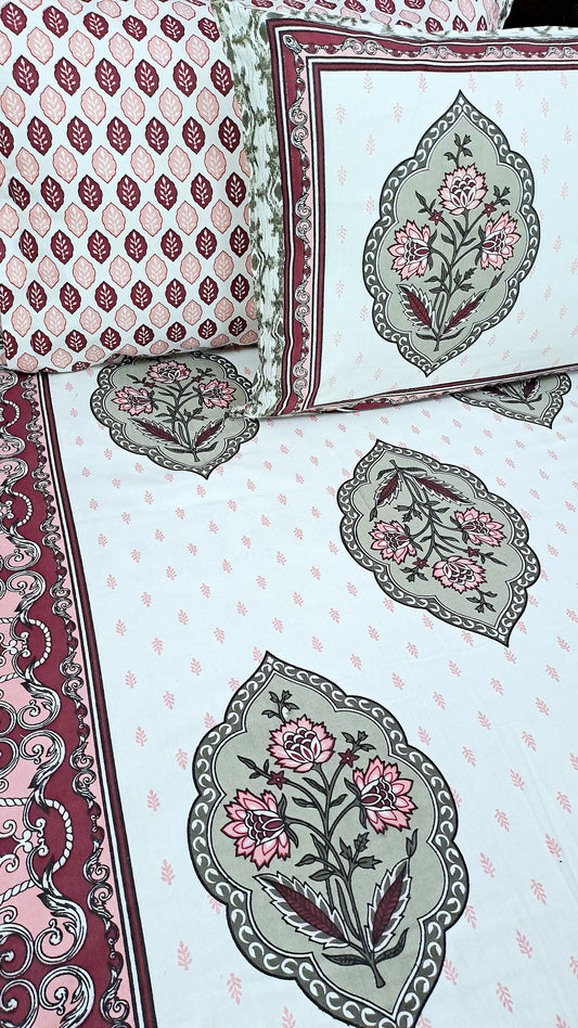 Gul Bagh Pure Cotton Double Bedsheet - Maroon Block