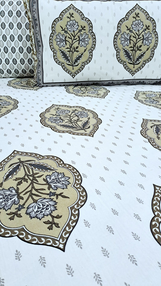 Nargis Pure Cotton Double Bedsheet - Brown Flower