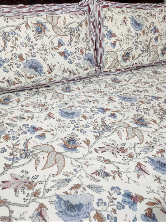 Paradise pure cotton anokhi print double bedsheet - Blue