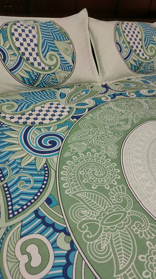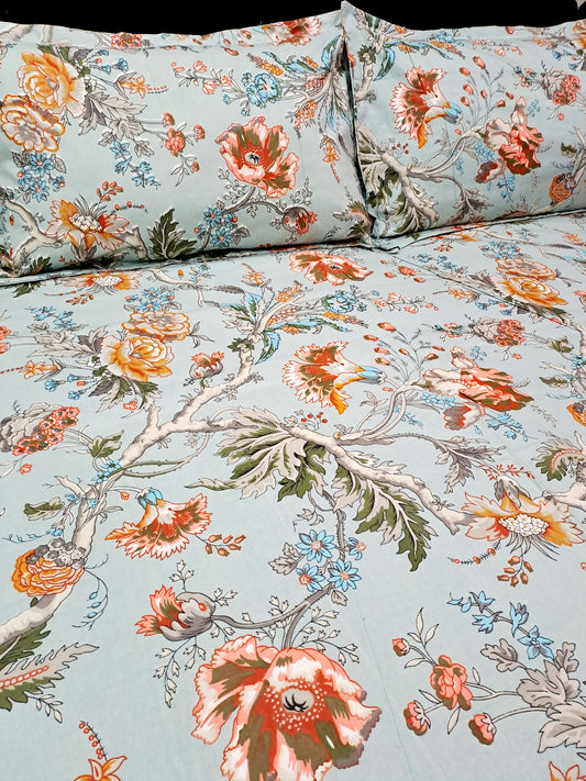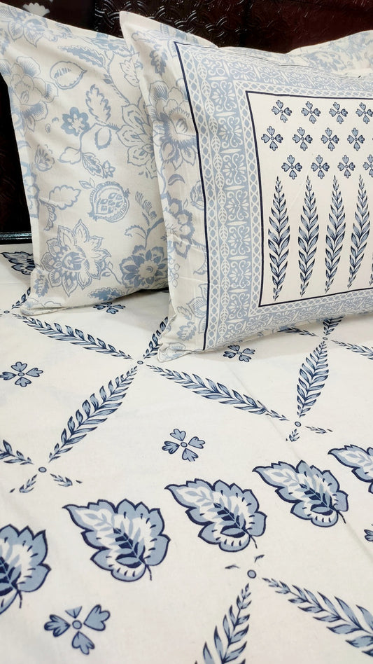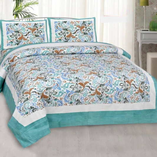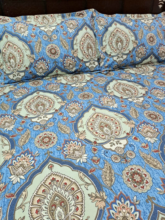 Morning Dew Pure Cotton Double Bedsheet - Blue