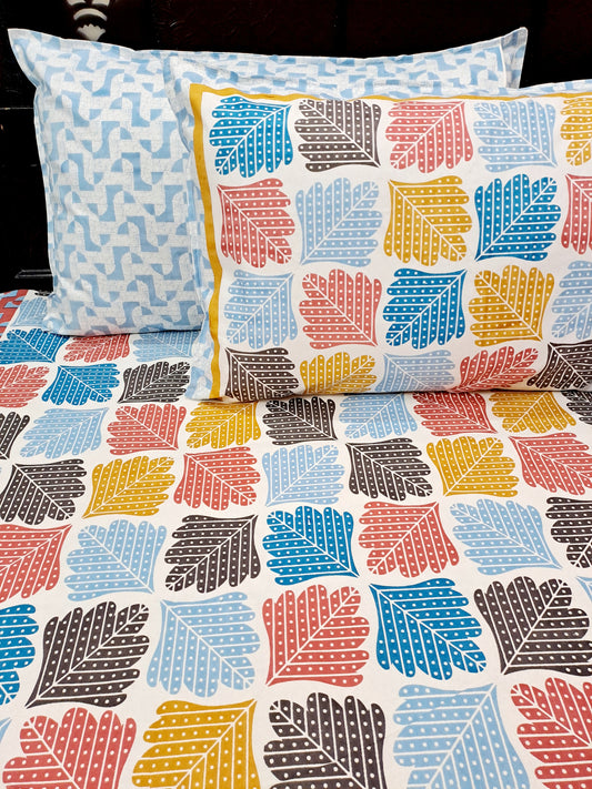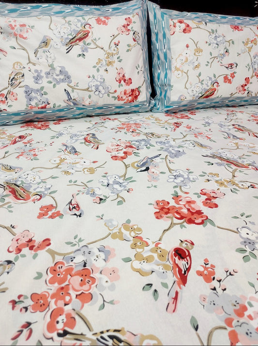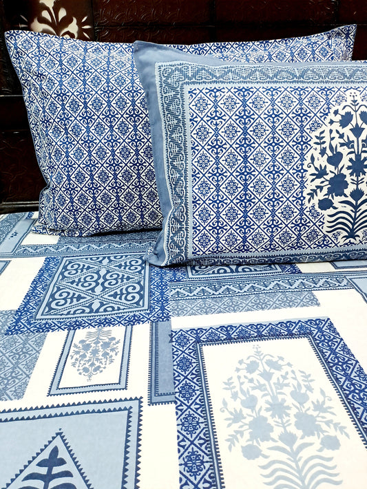Sparrow Pure Cotton Double Bedsheet-Blue