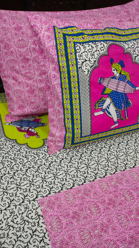 Rasiyaa Pure Cotton Double Bedsheet - Pink