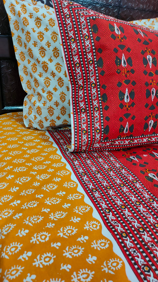 Rainbow Pure Cpotton Double Bedsheet - Triangle Print