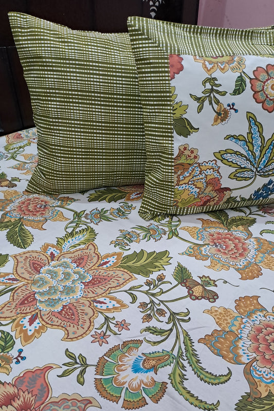 Blossom Cotton Double Bedsheet- Red and Yellow