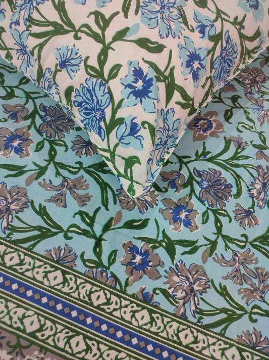 Morning Dew Pure Cotton Double Bedsheet - Blue