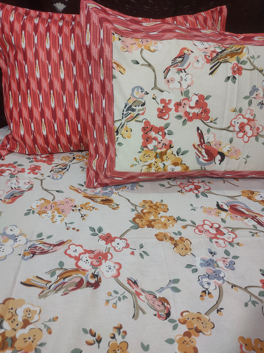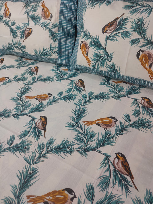 Singing Bird Pure Cotton Double Bedsheet -Blue