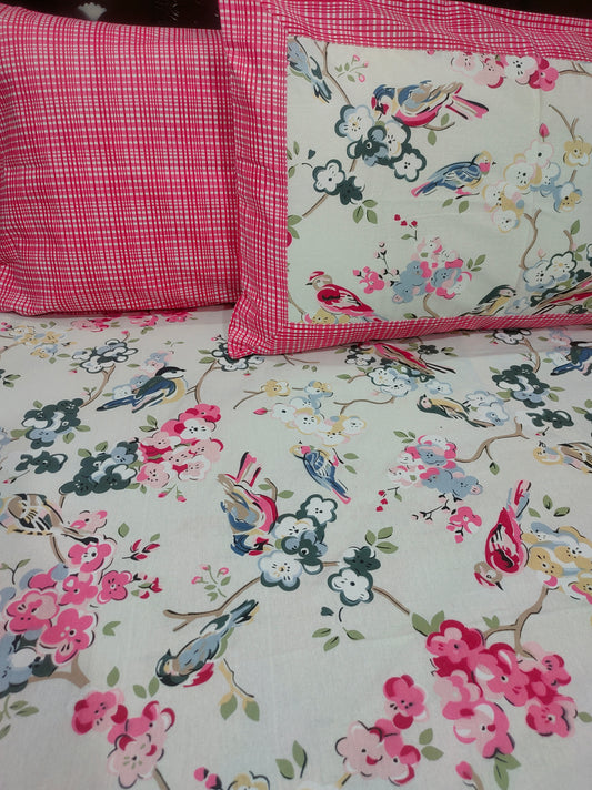 Sparrow Pure Cotton Double Bedsheet-Pink