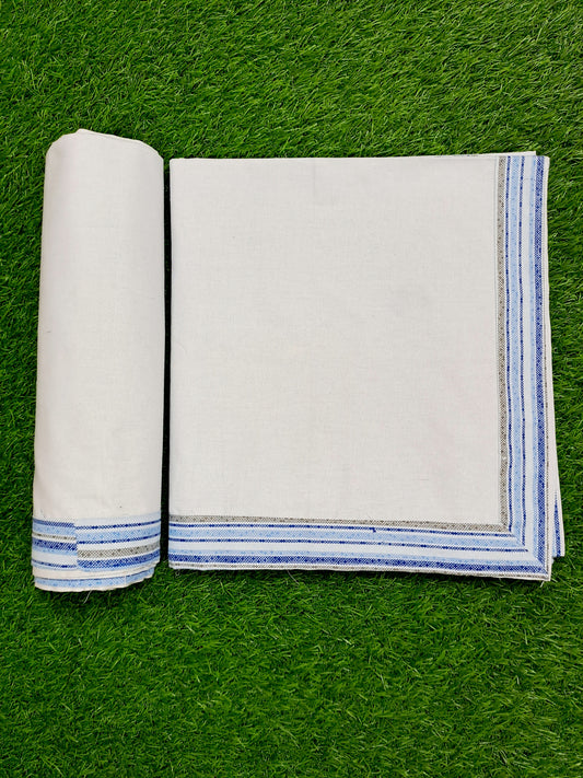 Pure Cotton Single Bed Size Topsheet - Plain Blue Border