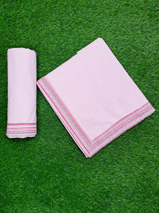 Pure Cotton Single Bed Size Topsheet - Plain Pink Border