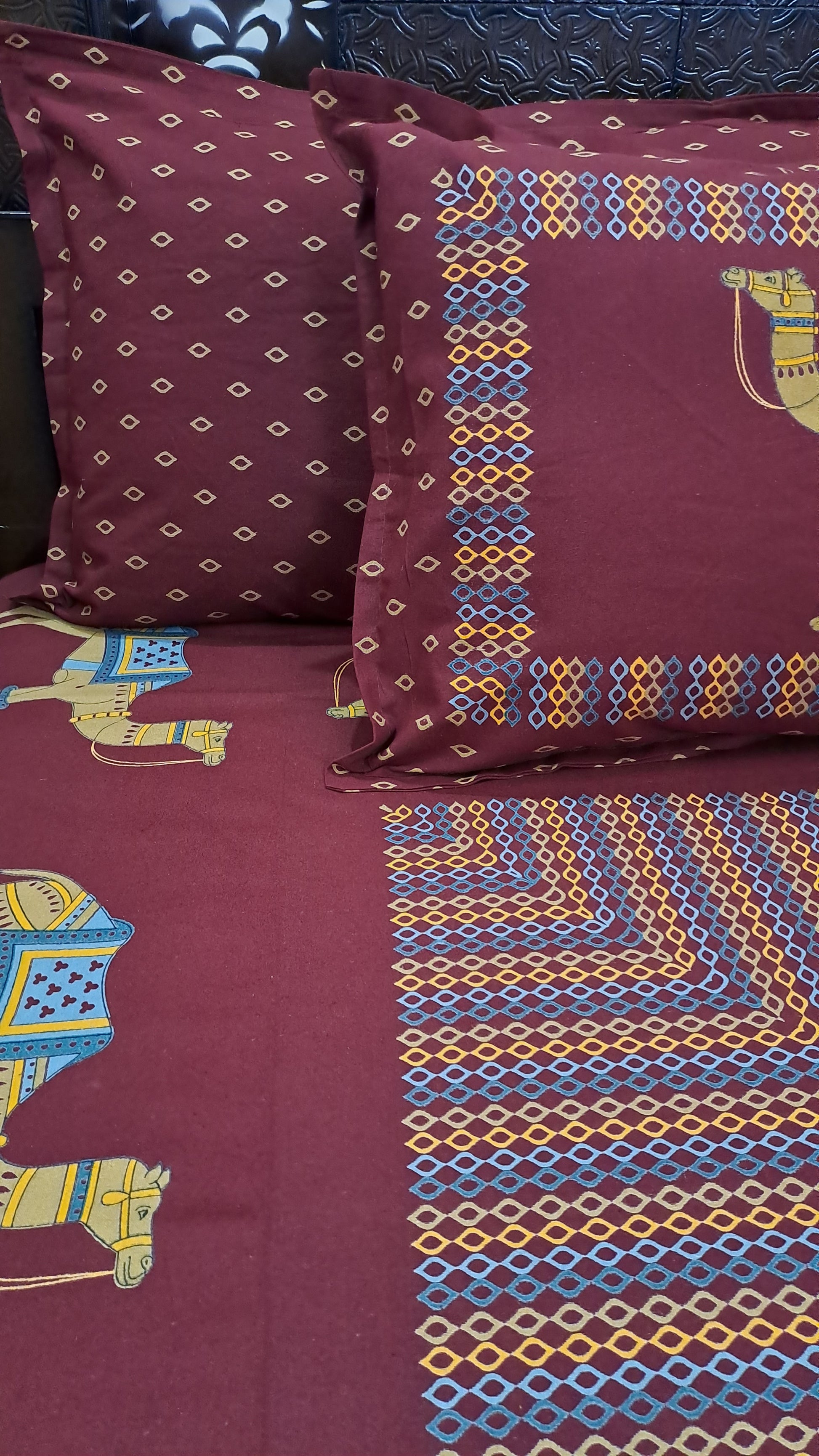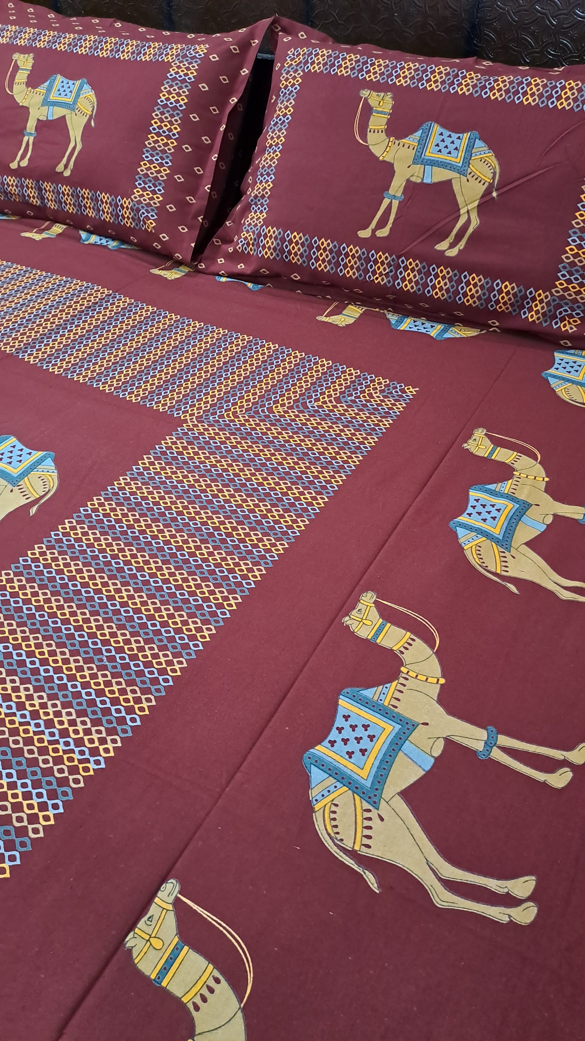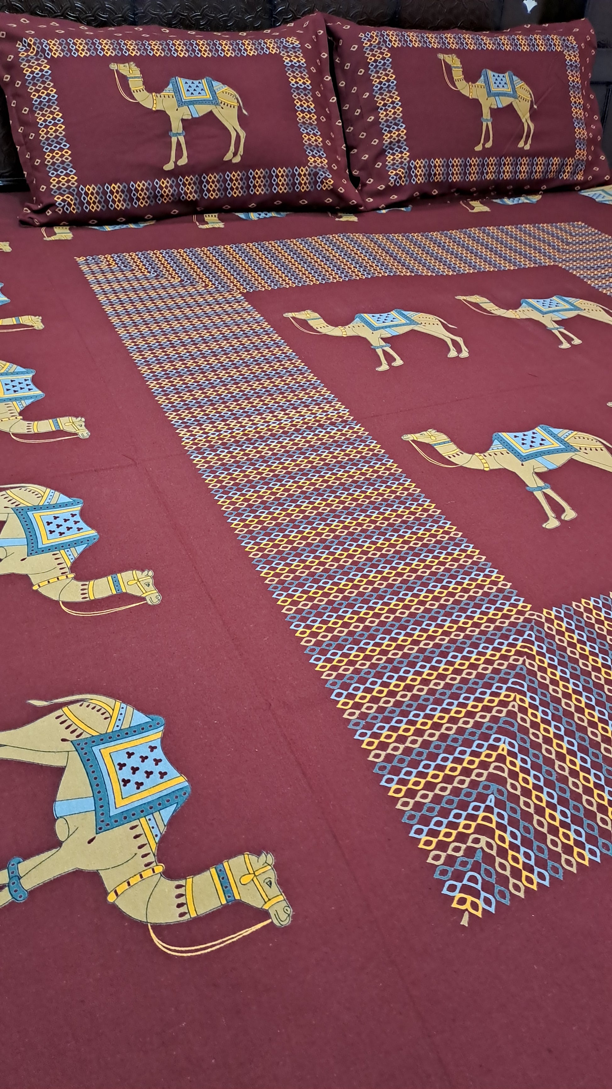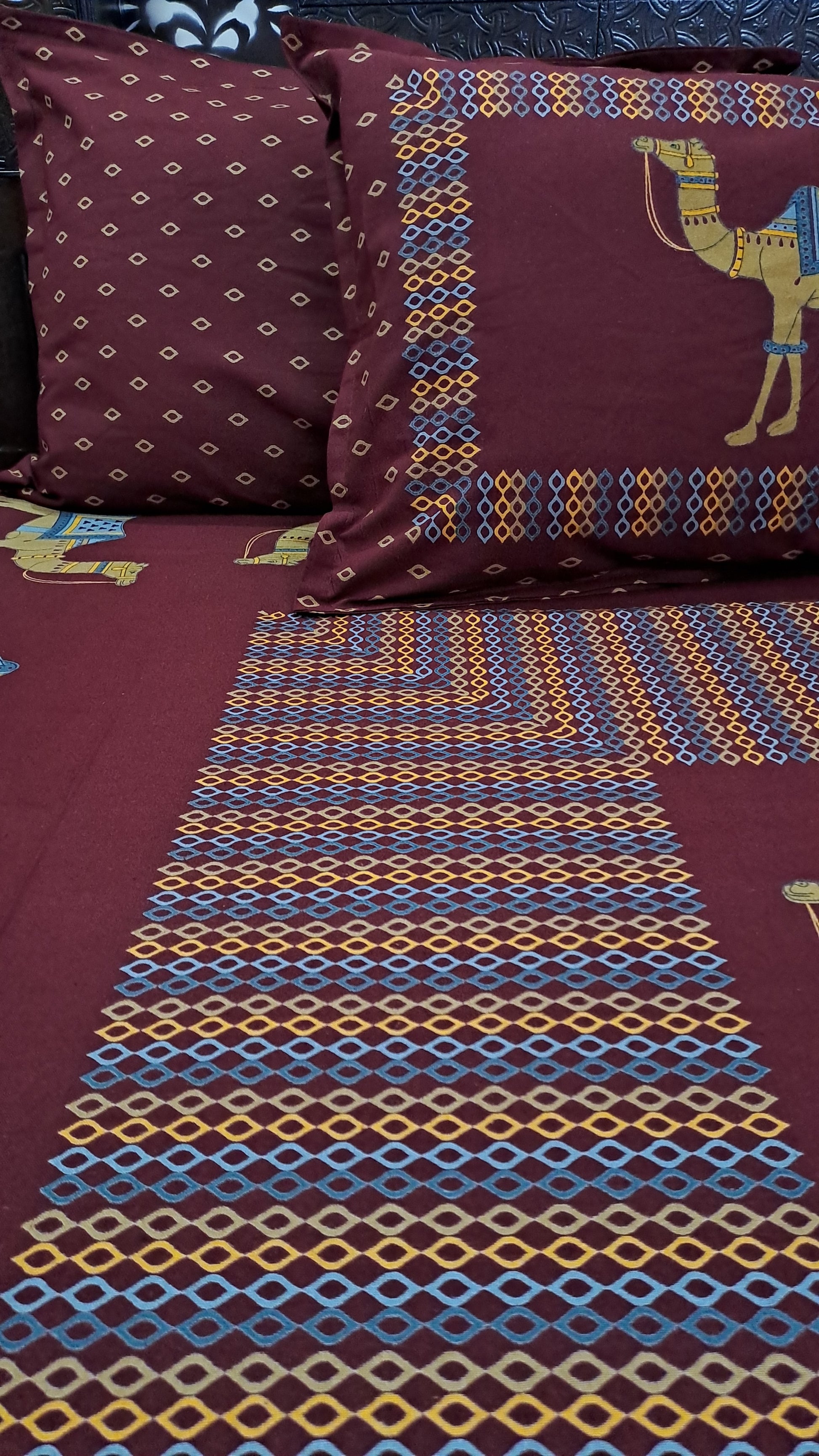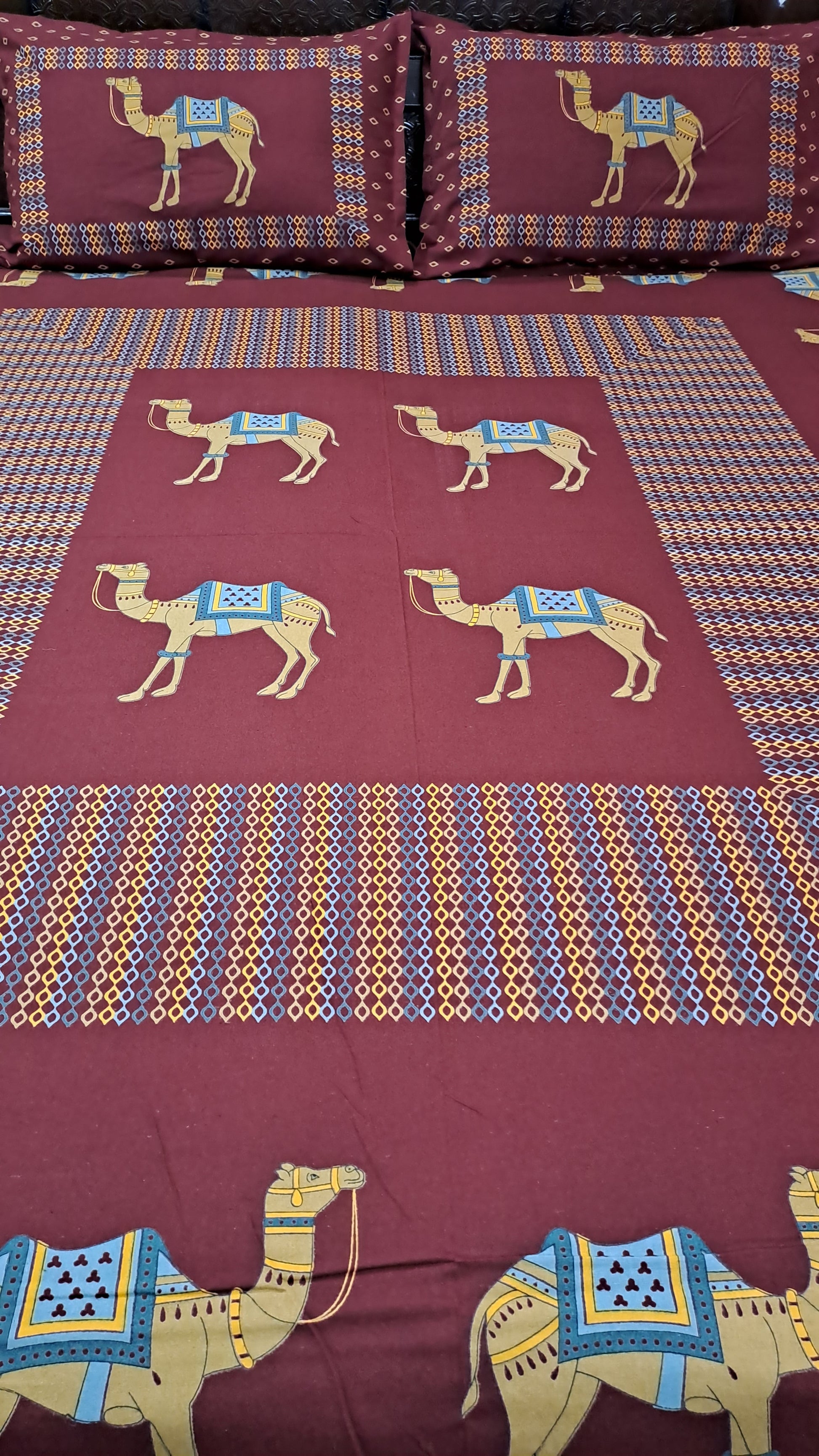 Royal Camel Pure Cotton Double Bedsheet King Size - Maroon