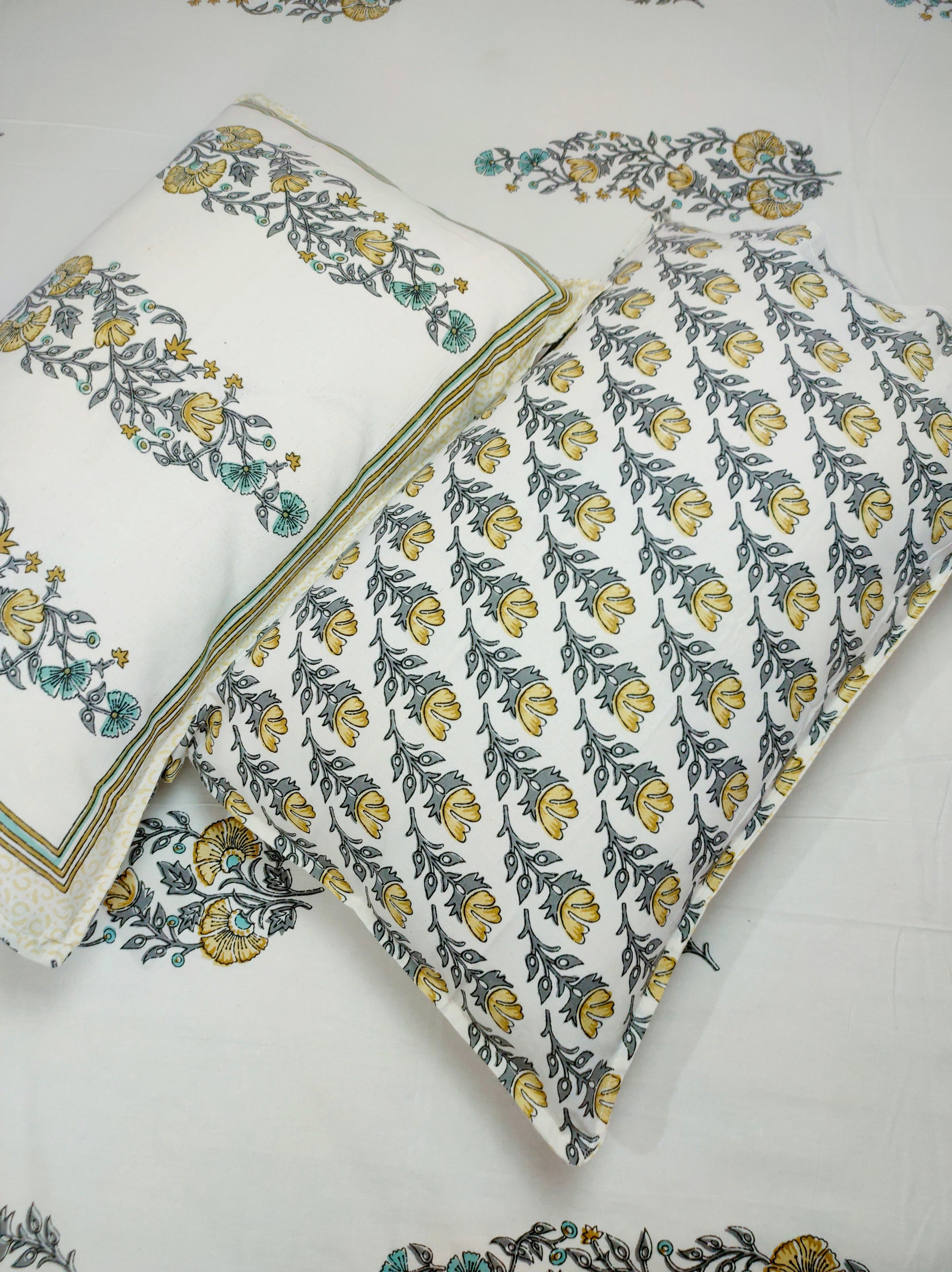 Set Content-1 Double bedsheet with two pillow covers.