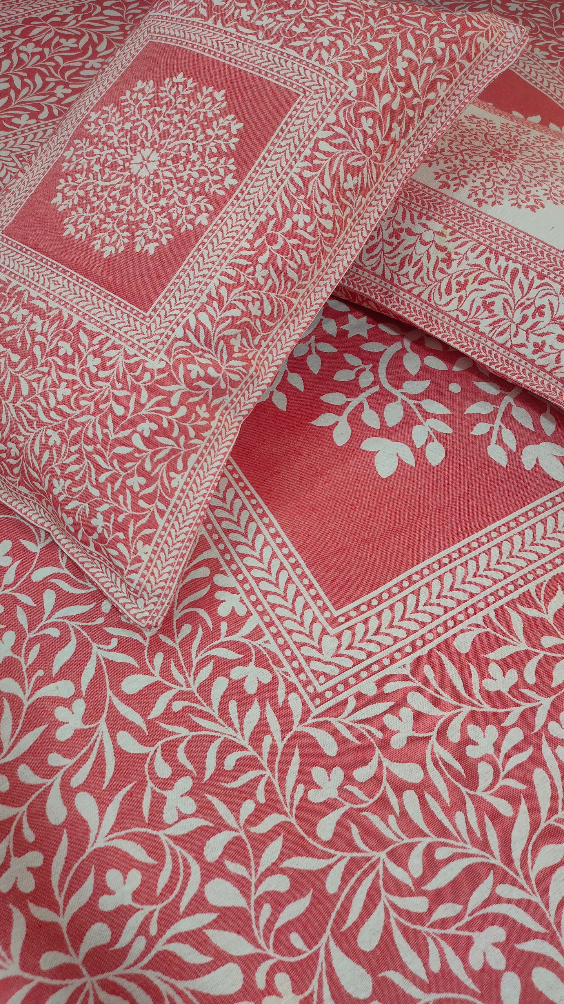 Set Content-1 Double bedsheet with two pillow covers.