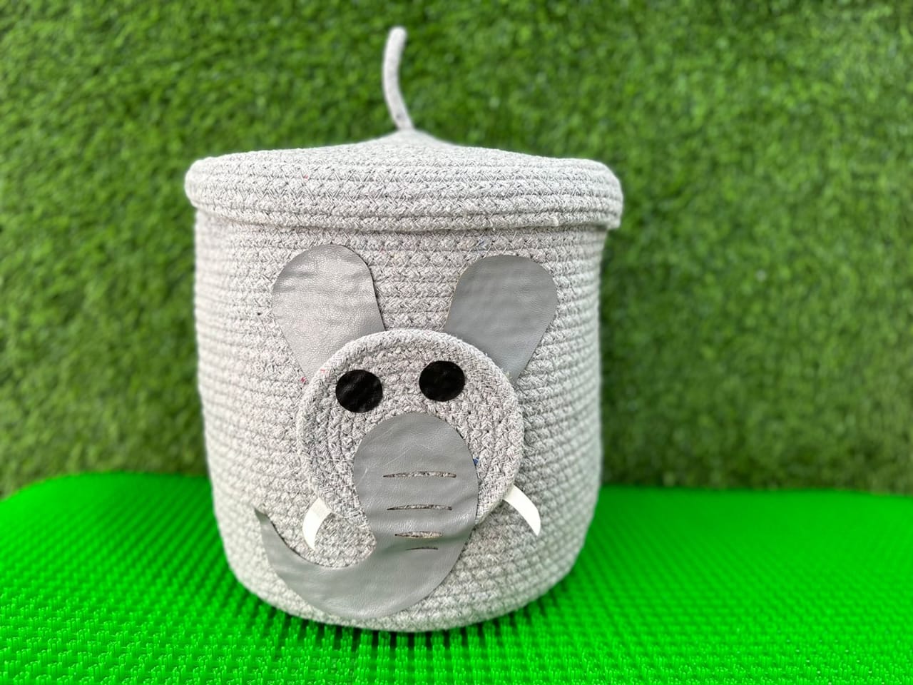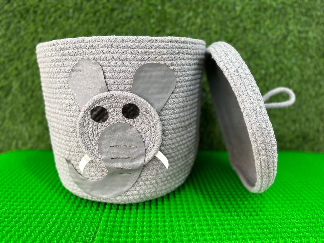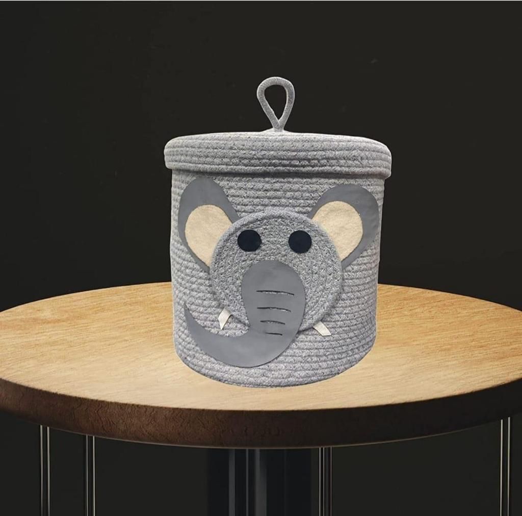 Natural cotton rope storage bins with lids/toy storage box-Elephant