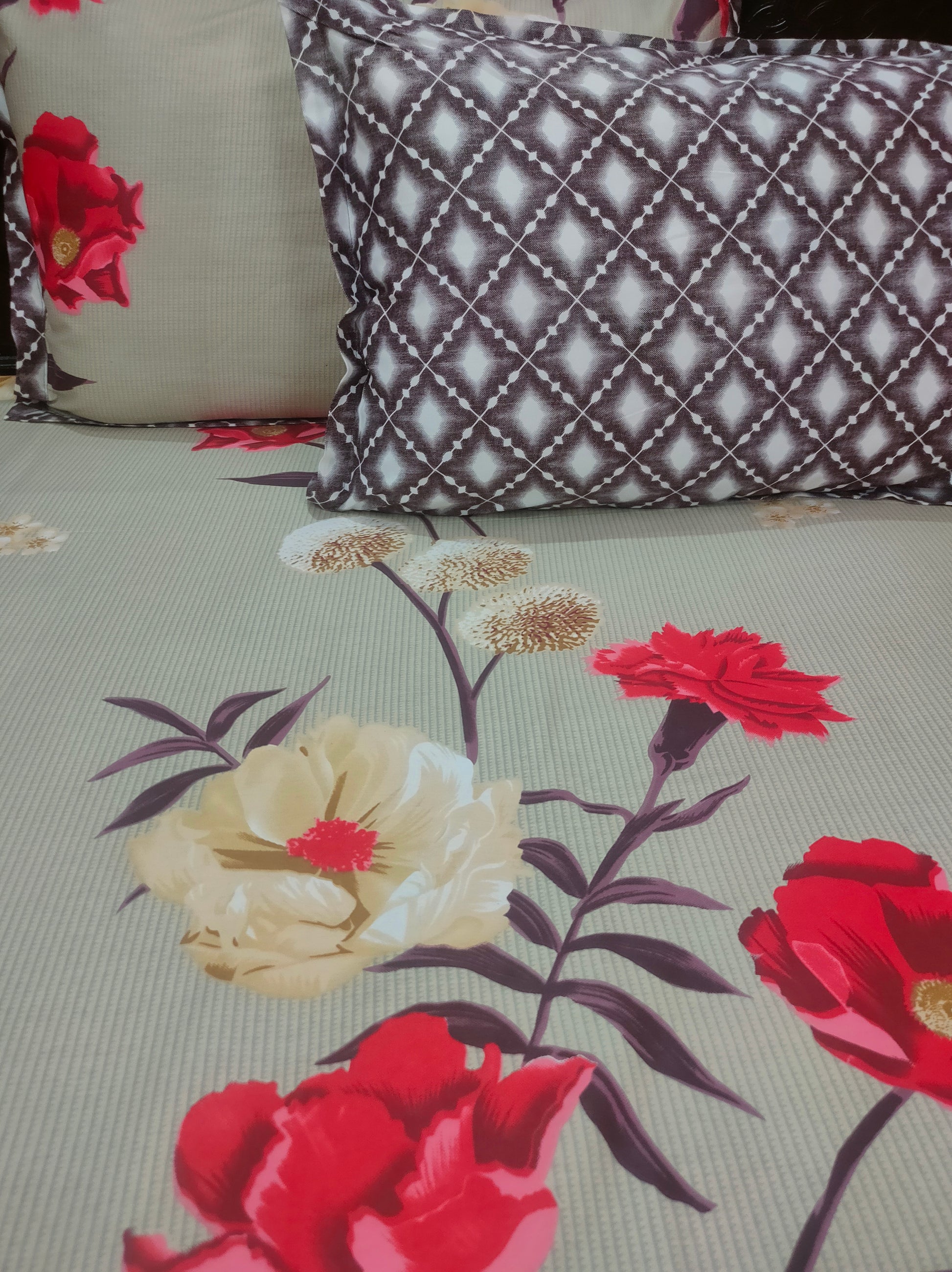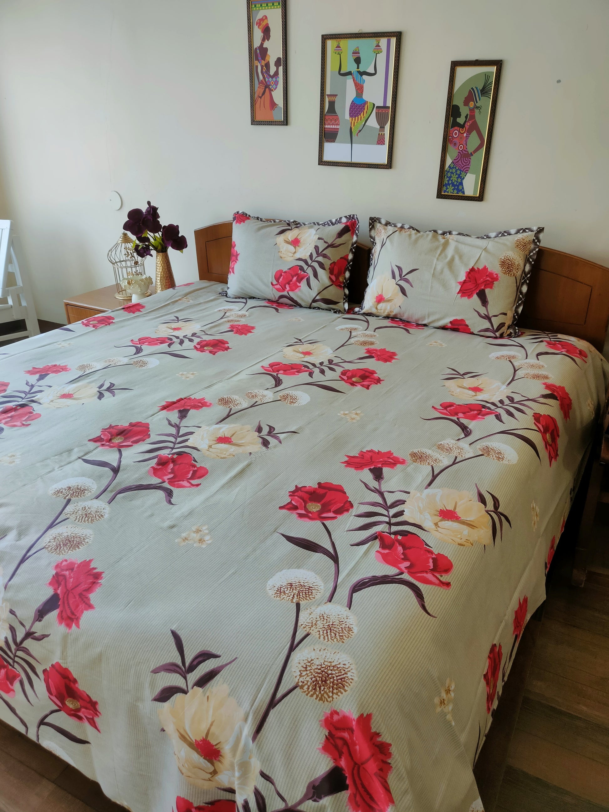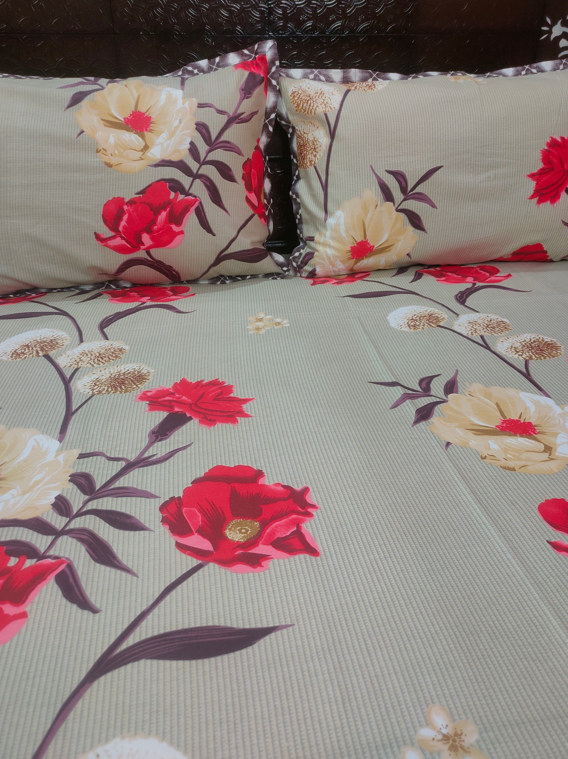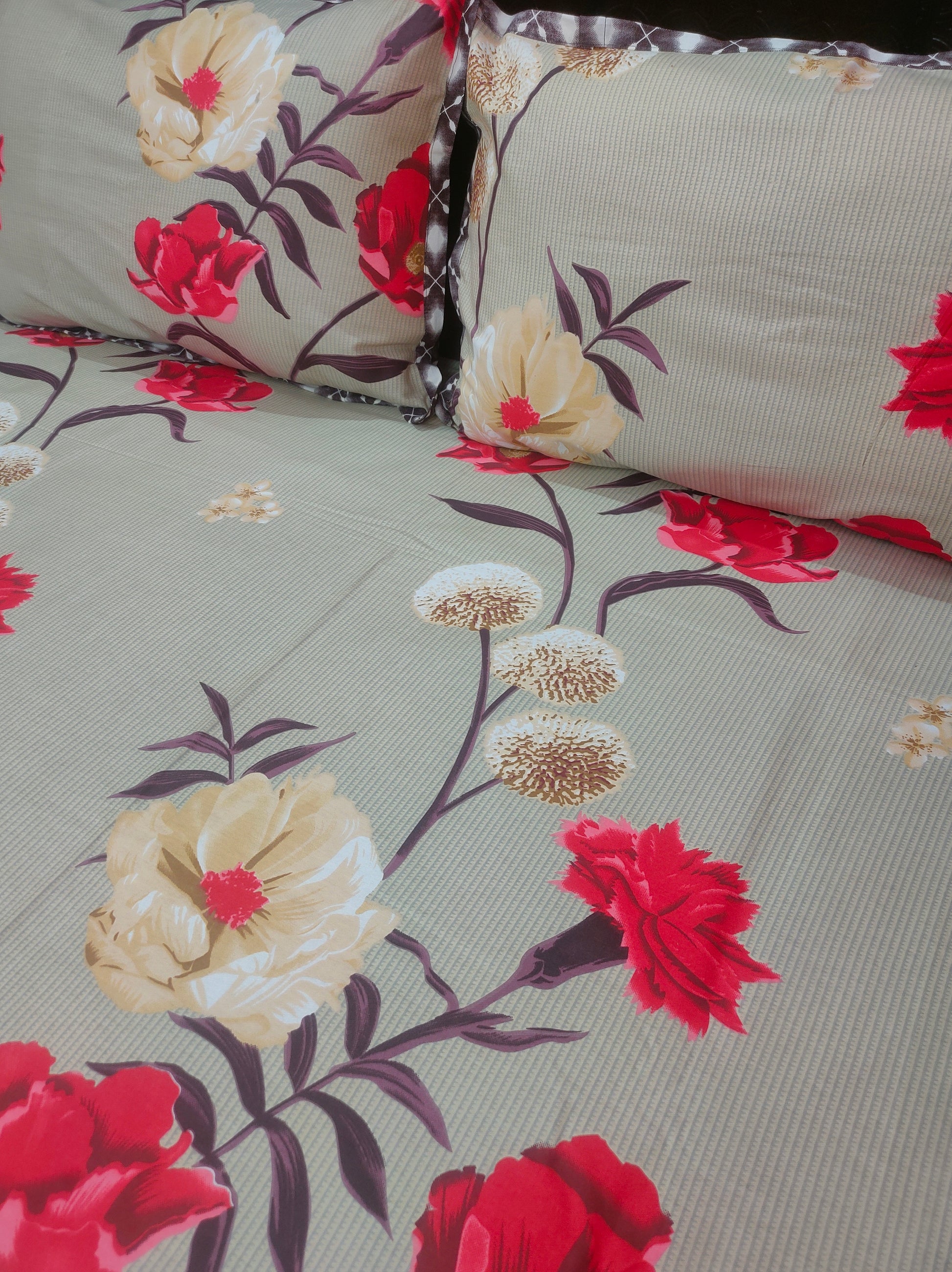 Set Content-1 Double bedsheet with two pillow covers.