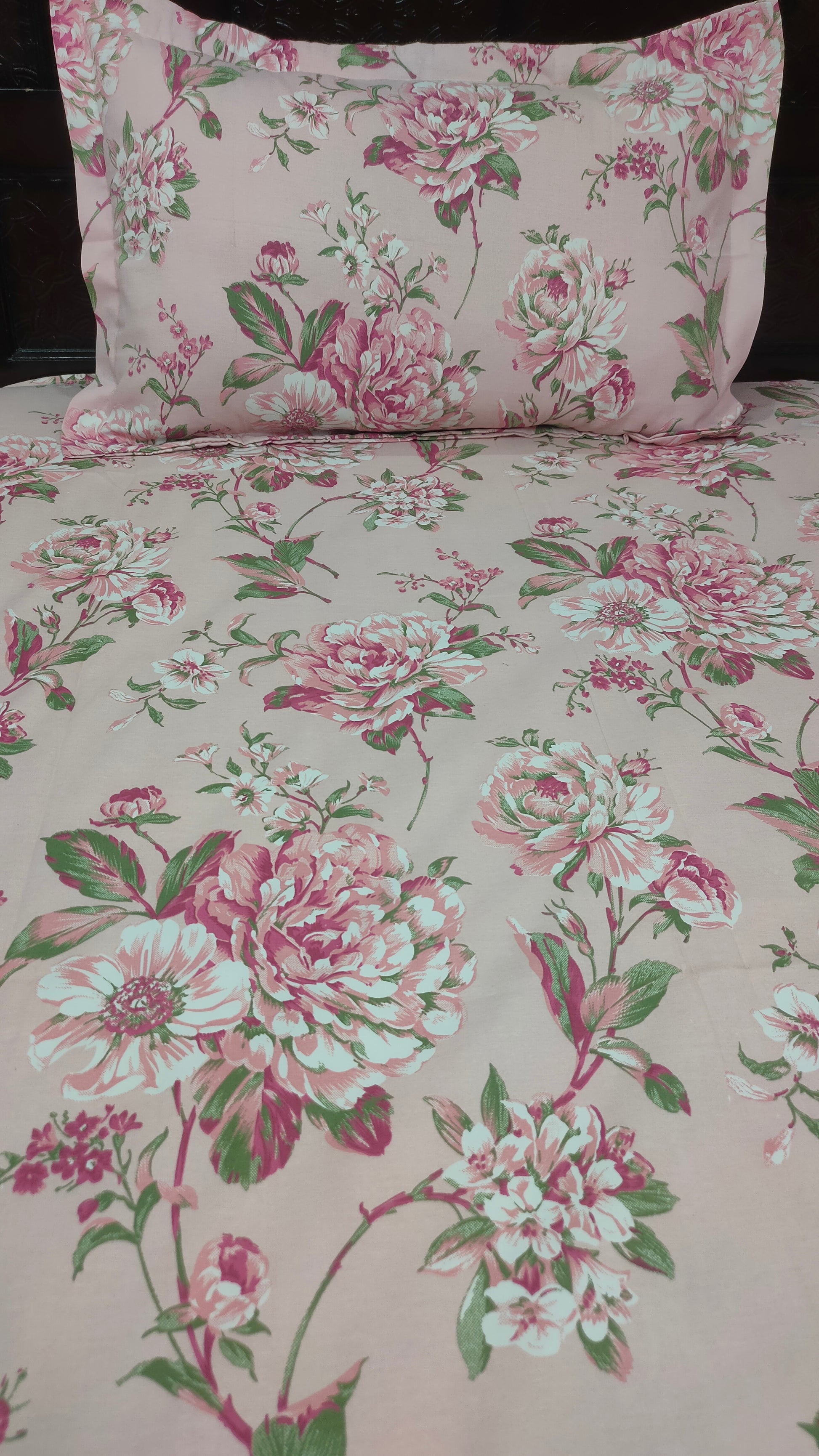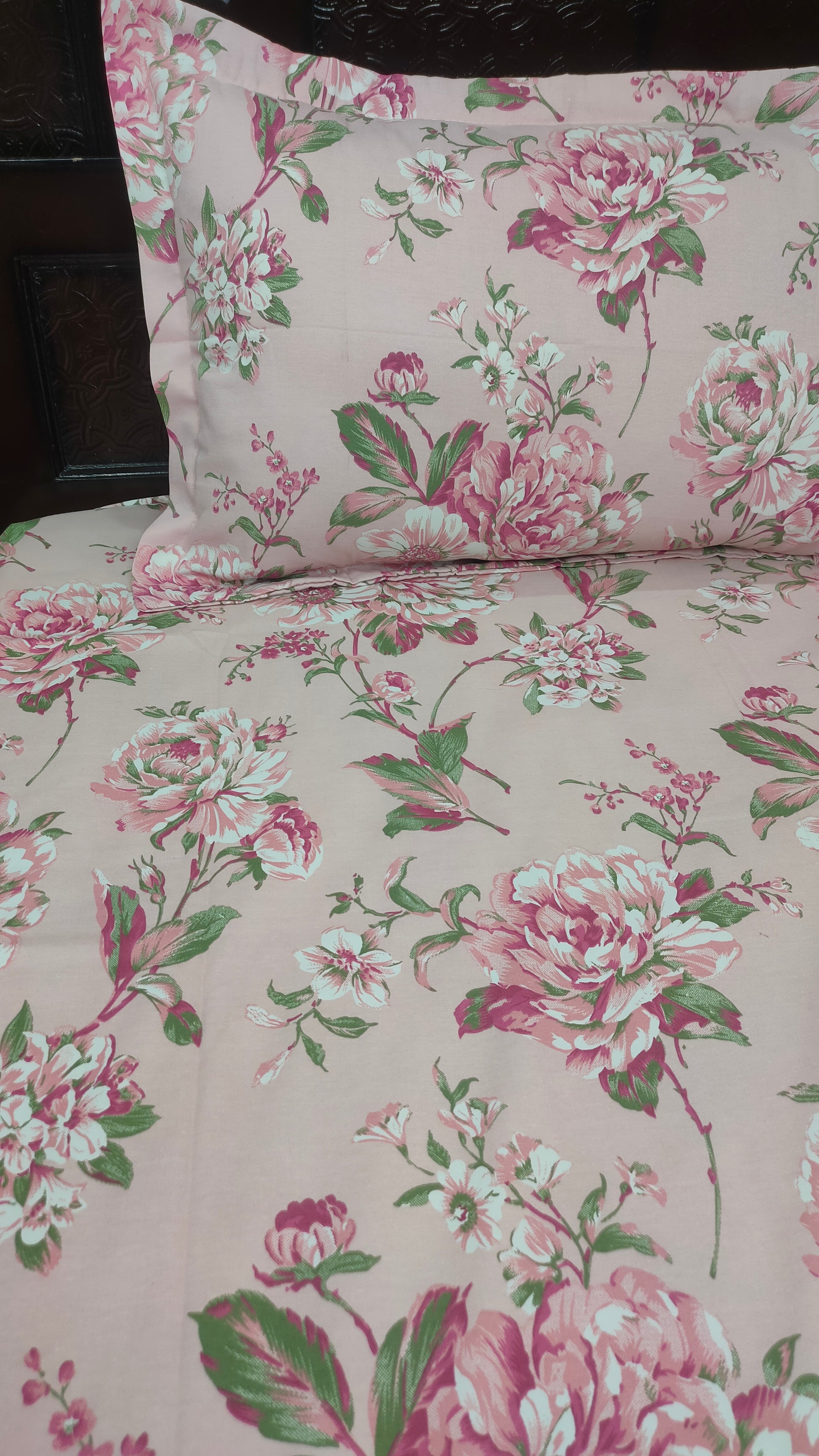 Angel Twill Cotton Rose Print Single Bedsheet-Pink