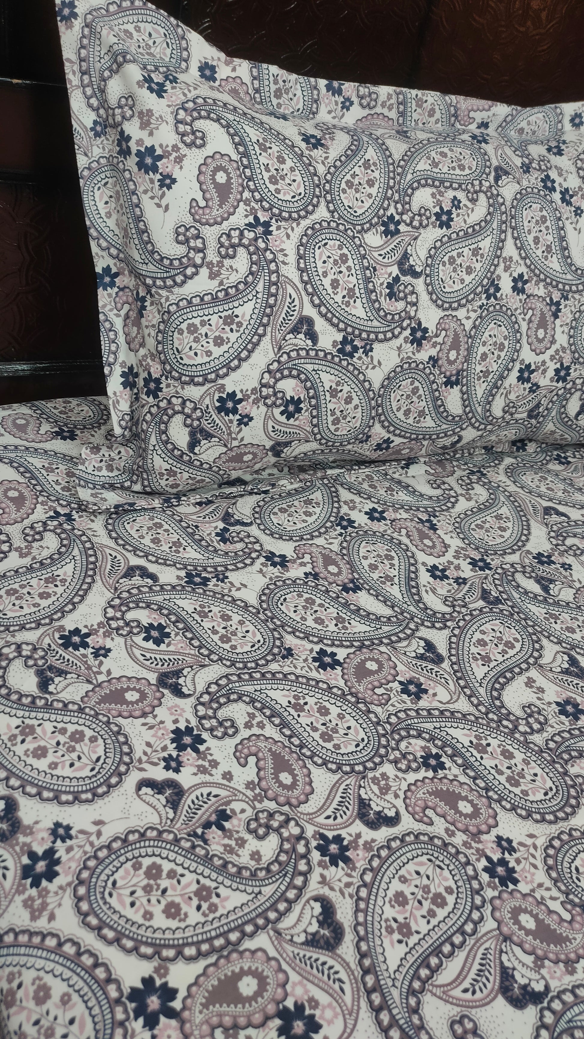 Angel Twill Cotton Paisley Print Single Bedsheet-Brown