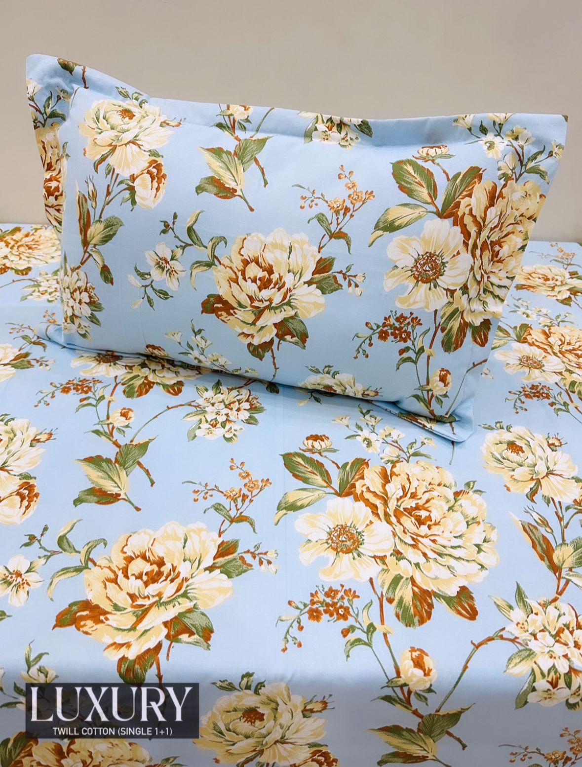 Angel Twill Cotton Rose Print Single Bedsheet- Blue